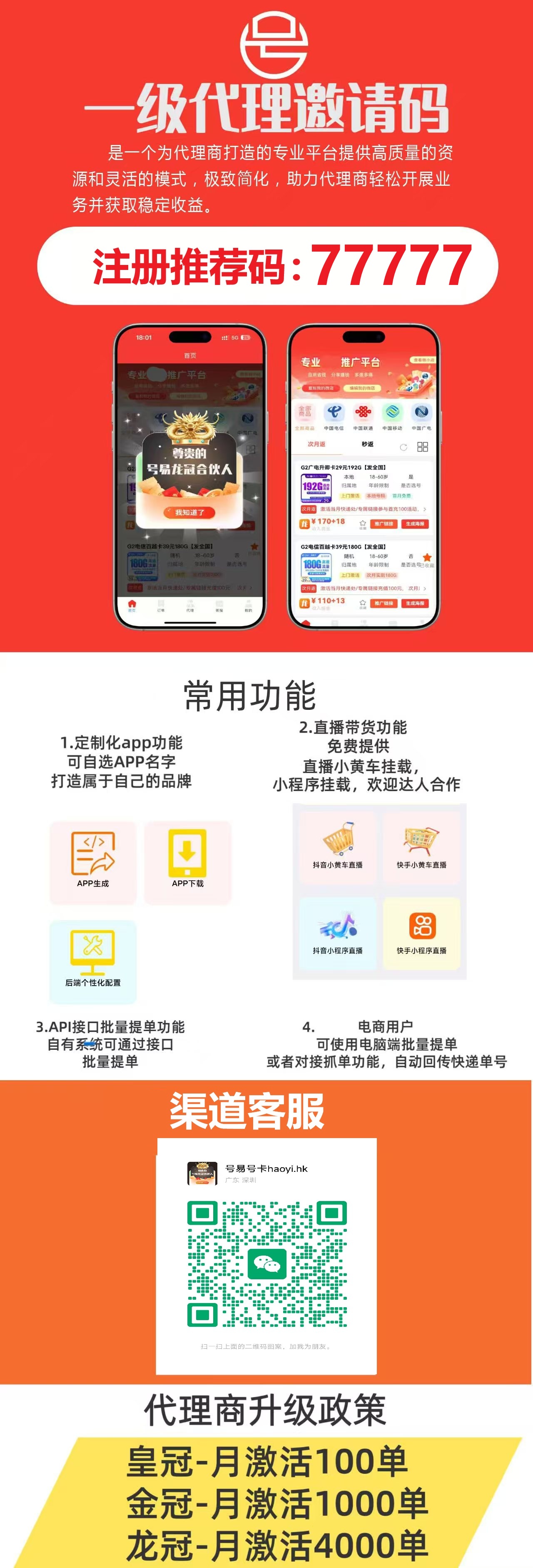 号易号卡分销系统 官方推荐码 77777(5个7) 高佣金 | 数据实时